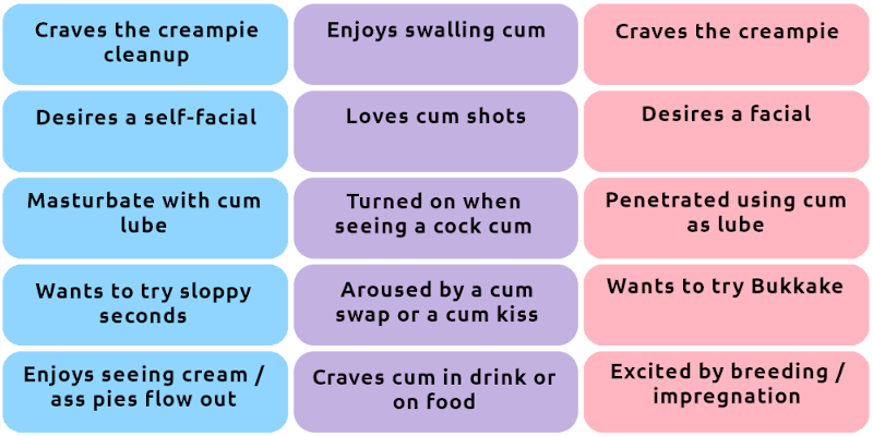 In simple terms, a cum kink is when someone is sexually aroused by the sight, smell, taste and feel of semen and they desire to have it on or in their body or both. Cum kinks can take many forms. Below is a list of the most common cum-filled activities.